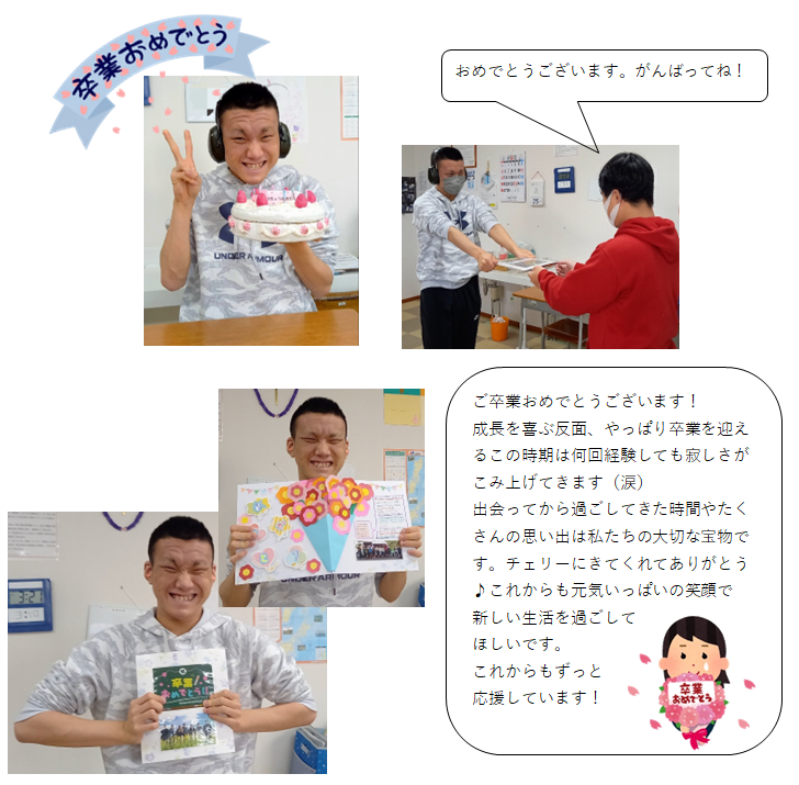 明日3月1日をもって高校の卒業式を迎え、同時に放課後等デイサービスの卒業を迎える卒業生が1人。